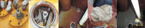 液壓油經(jīng)過2000小時(shí)操作后,油祥放大100倍再拍照,可清楚看見具有磨損性的雜質(zhì)。