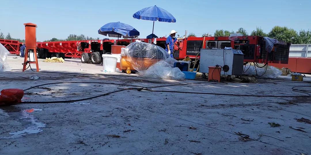 為確保項(xiàng)目順利完成,萬(wàn)山公司一邊加緊為觀禮臺(tái)項(xiàng)目定制生產(chǎn)20臺(tái)平板車(chē),另一邊趕往全國(guó)各地協(xié)調(diào),將已售出的動(dòng)力頭和230軸線模塊車(chē)租回進(jìn)行改造、升級(jí),并對(duì)車(chē)輛進(jìn)行維護(hù)保養(yǎng)。