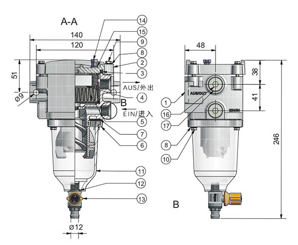[1]DerWasserabscheidegrad wurde bei derW. LösingFilterproduktion GmbHsowohl in Anlehnungan die DIN4020 als auch an die